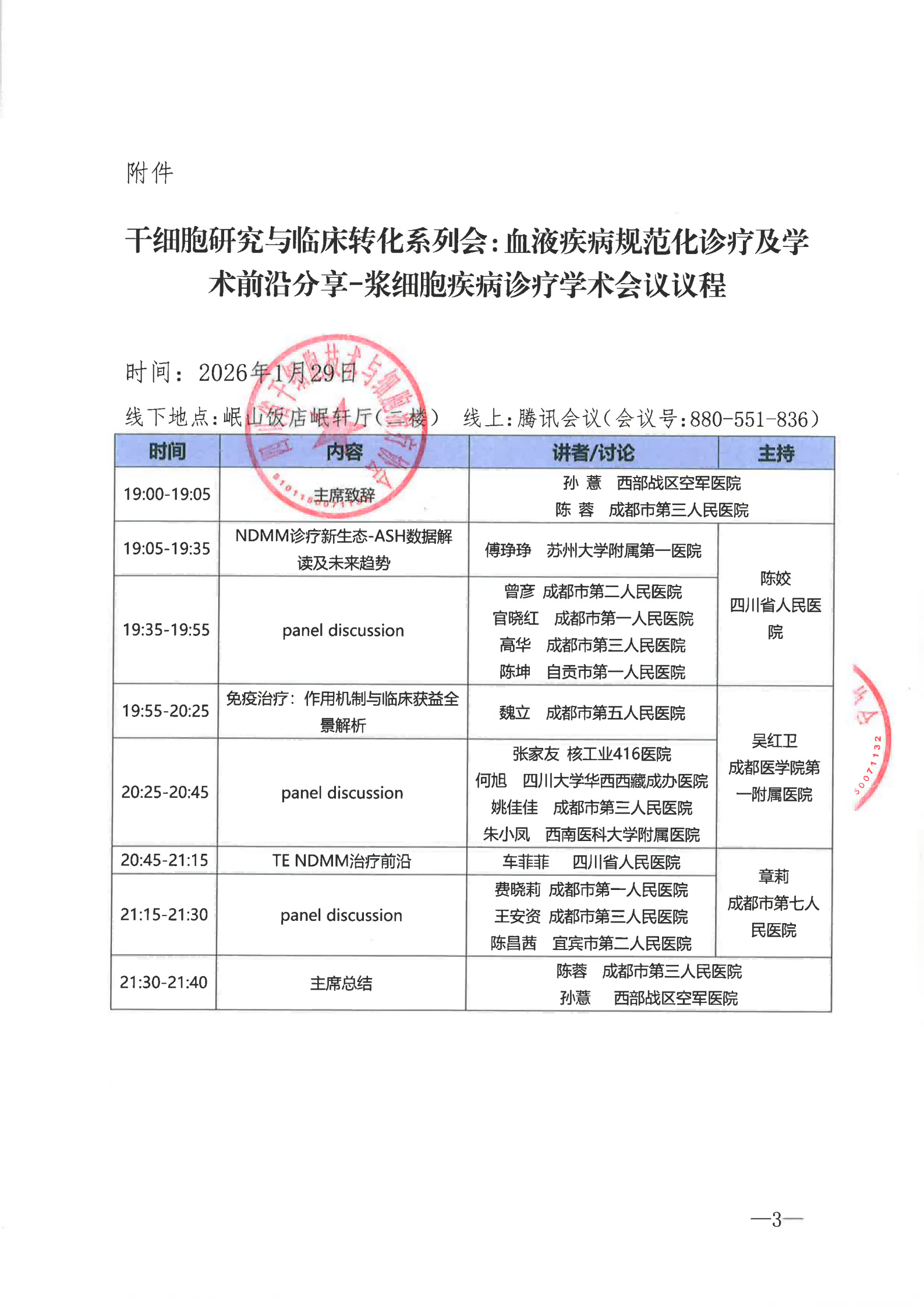 关于举办干细胞研究与临床转化系列会:血液疾病规范化诊疗及学术前沿分享-浆细胞疾病诊疗学术会议的通知